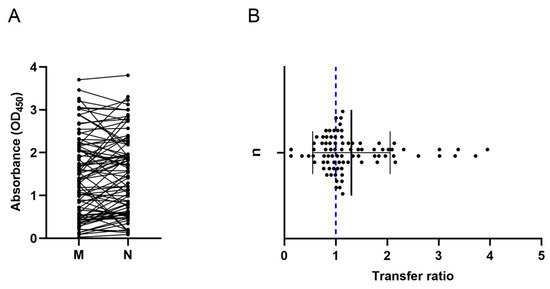 - Flannery, D.D.; Gouma, S.; Dhudasia, M.B.; Mukhopadhyay, S.; Pfeifer, M.R.; Woodford, E.C.; Triebwasser, J.E.; Gerber, J.S.; Morris, J.S.; Weirick, M.E.; et al. Assessment of Maternal and Neonatal Cord Blood SARS-CoV-2 Antibodies and Placental Transfer Ratios. JAMA Pediatr. 2021, 175, 594–600. [Google Scholar] [CrossRef] [PubMed]
