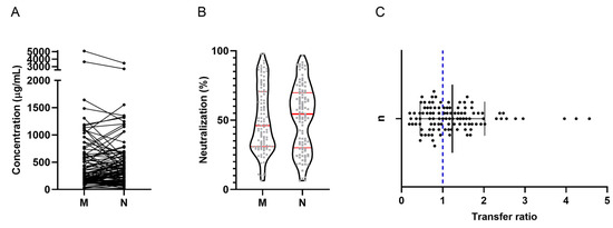 Chicago/Turabian StyleMartínez-Quezada, Rebeca, Carlos Emilio Miguel-Rodríguez, Tito Ramírez-Lozada, Omar Esteban Valencia-Ledezma, and Gustavo Acosta-Altamirano. 2024. "Placental Transfer Efficiency of Neutralizing Antibodies on SARS-CoV-2 Vaccination before and after Pregnancy in Mexican Women" International Journal of Molecular Sciences 25, no. 3: 1516. https://doi.org/10.3390/ijms25031516