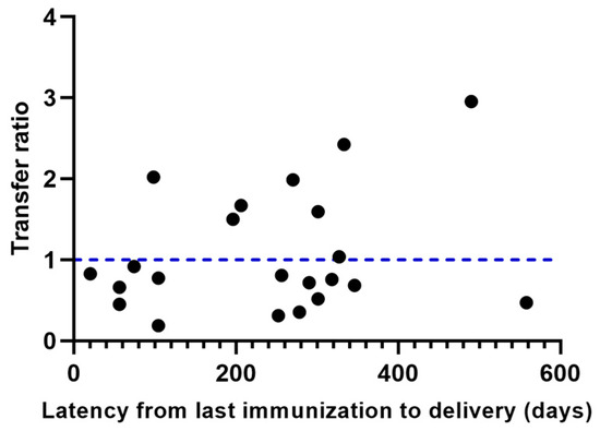 2.6. Association between Latency since Last Immunization and Placental Transfer Efficiency
