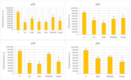 4.4. Evaluation of the Effect of Antioxidants on Replicative Senescence