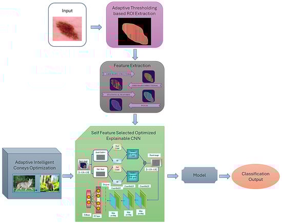 - Construct a Self-Featured Optimized Explainability technique that dynamically adjusts the network architecture by selecting the most informative features for each image, leading to a more interpretable model and improved classification accuracy. The self-feature selected ECNN model detects and classifies skin cancer; the model’s hyperparameters are tuned by the novel AICO optimization algorithm, which aims to detect skin cancer accurately.