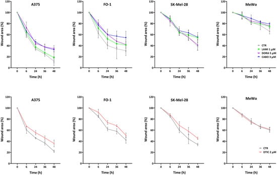 2.3. Effects of Lamivudine, Doravirine, and Cabotegravir on Melanoma Cell Migration Capability