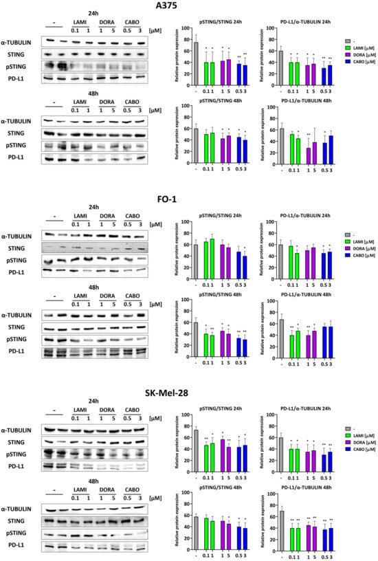 2.5. Lamivudine, Doravirine, and Cabotegravir Affect the Expression Levels of STING and PD-L1