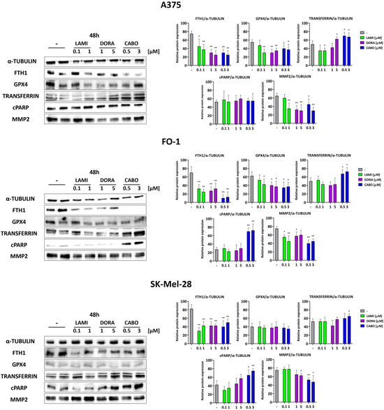 - Khorsandi, K.; Esfahani, H.; Ghamsari, S.K.; Lakhshehei, P. Targeting Ferroptosis in Melanoma: Cancer Therapeutics. Cell Commun. Signal. 2023, 21, 337. [Google Scholar] [CrossRef] [PubMed]
