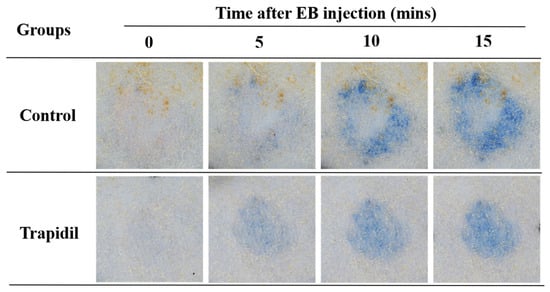 Macroscopic observation of control and Trapidil groups after EB injection. EB: Evans Blue.