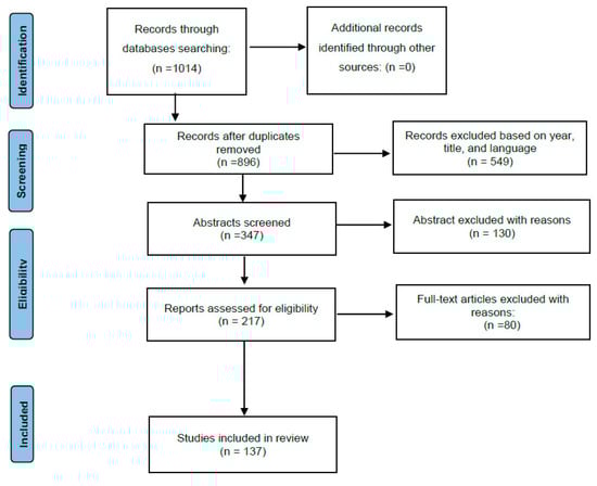 Articles were evaluated via paper title, abstract, and content in accordance with the agreement of the works with our inclusion criteria. A total of 137 papers were included in this review (Figure 1). The inclusion methodology was handled in strict accordance with the guidelines of the PRISMA.