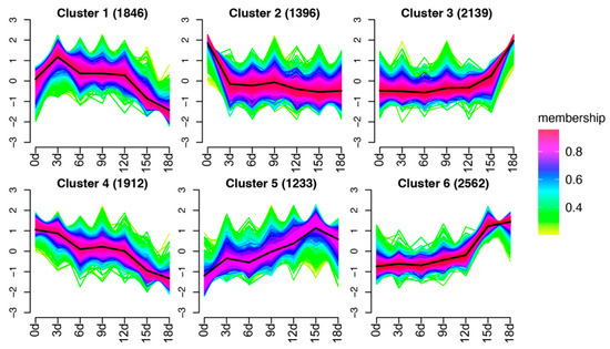 - Kumar, L.; Futschik, M.E. Mfuzz: A software package for soft clustering of microarray data. Bioinformation 2007, 2, 5. [Google Scholar] [CrossRef]
