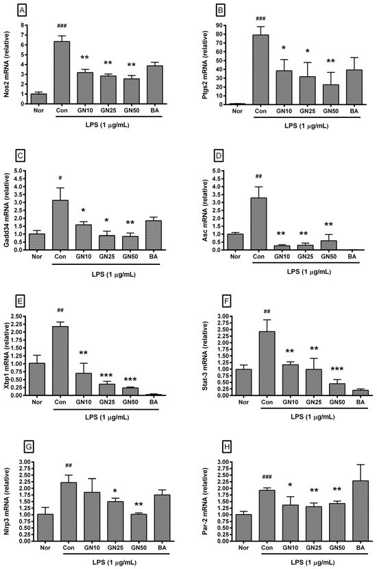 2.4. Effect of Geniposide on Inflammatory Target Genes Expressions