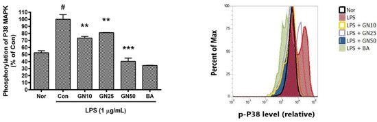 2.5. Effect of Geniposide on P38 MAPK Phosphorylation