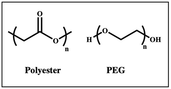 Chemical structures of non-cationic polymers for mRNA delivery as follows: that of polyester and that of polyethylene glycol (PEG).