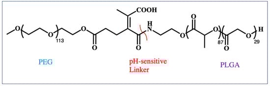 Structure of the MeO-PEG pH-sensitive linker PLGA polymeric chain, PLGA = poly (D, L-lactide-co-glycolide) [89].