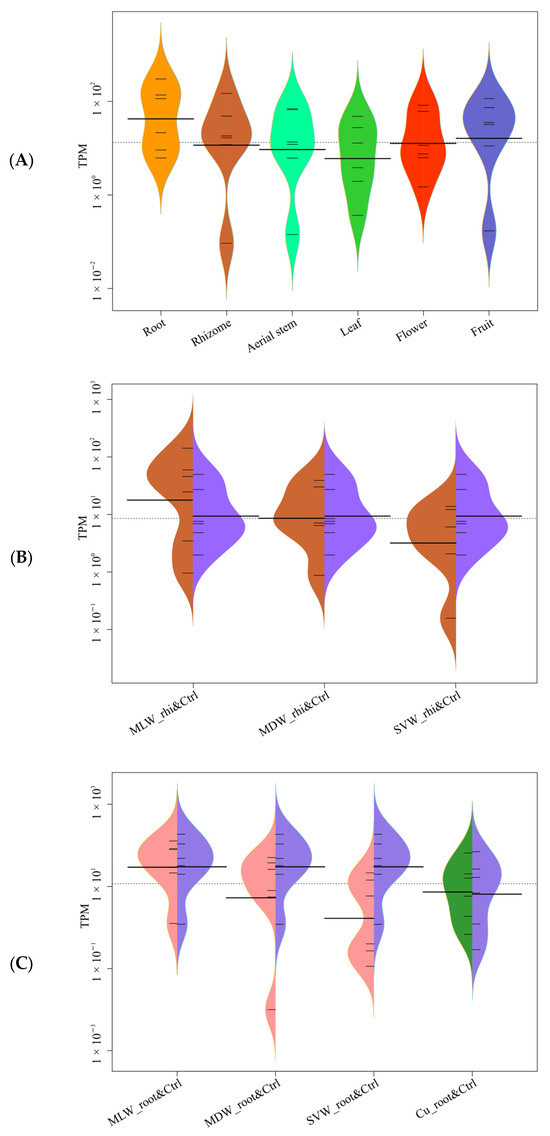 - Ai, Q.; Sun, Y.; Dai, A.; Lyu, Z.; Liu, C.; Han, M.; Yang, L. Root Physiological Changes and Transcription Analysis of Iris domestica in Response to Persistent Drought. Horticulturae 2022, 8, 1162. [Google Scholar] [CrossRef]