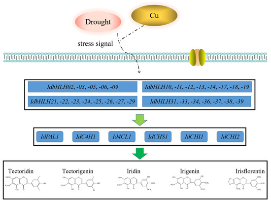 2.5. Expression Profiles of IdbHLHs in Response to Drought and Copper Stress