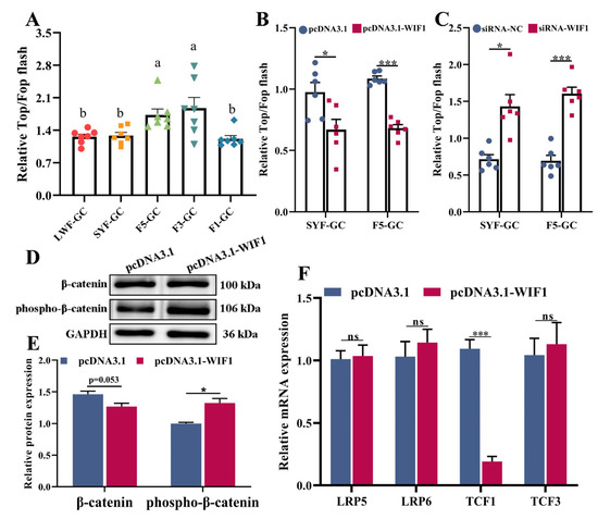 2.5. WIF1 Inhibits Wnt Signaling Activity in Chicken GCs