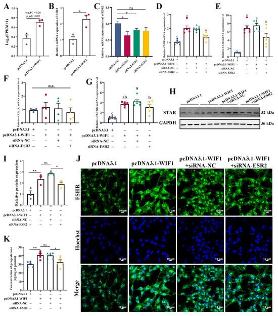2.7. WIF1 Promotes Progesterone Synthesis through Upregulation of ESR2 in GCs
