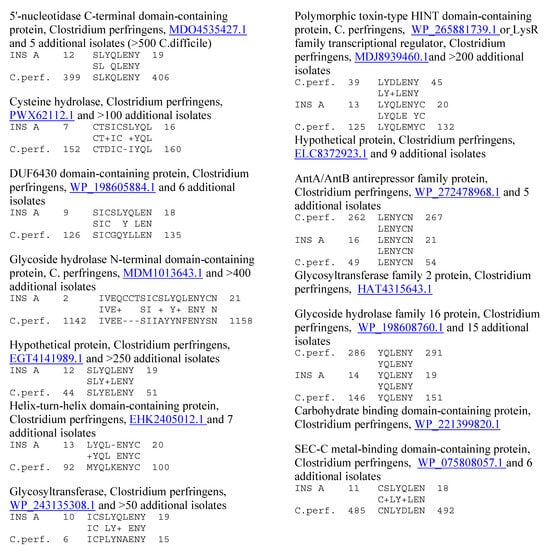 Similarities between Clostridium perfringens (C.perf.) proteins (UniProtKB identifiers are underlined) and the human insulin A chain (INS A), using LALIGN.