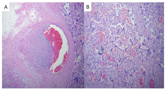 17. Bouachba, A.; Allias, F.; Nadaud, B.; Massardier, J.; Mekki, Y.; Bouscambert Duchamp, M.; Fourniere, B.D.L.A.; Huissoud, C.; Trecourt, A.; Collardeau-Frachon, S. Placental Lesions and SARS-Cov-2 Infection: Diffuse Placenta Damage Associated to Poor Fetal Outcome. Placenta 2021, 112, 97–104. [Google Scholar] [CrossRef] [PubMed]