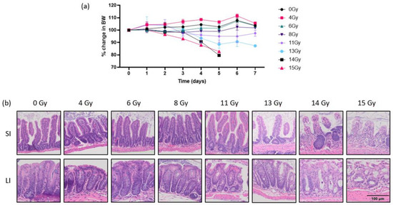 - Li, H.; Kucharavy, H.C.; Hajj, C.; Zhao, L.; Hua, G.; Glass, R.; Paty, P.B.; Fuks, Z.; Kolesnick, R.; Hubbard, K.; et al. Radiation-induced gastrointestinal (GI) syndrome as a function of age. Cell Death Discov. 2023, 9, 31. [Google Scholar] [CrossRef] [PubMed]