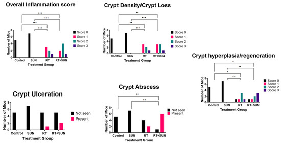 APA StylePrebble, A. R., Latka, B., Burdekin, B., Leary, D., Harris, M., Regan, D., & Boss, M.-K. (2024). Investigation of Gastrointestinal Toxicities Associated with Concurrent Abdominal Radiation Therapy and the Tyrosine Kinase Inhibitor Sunitinib in a Mouse Model. International Journal of Molecular Sciences, 25(3), 1838. https://doi.org/10.3390/ijms25031838