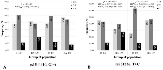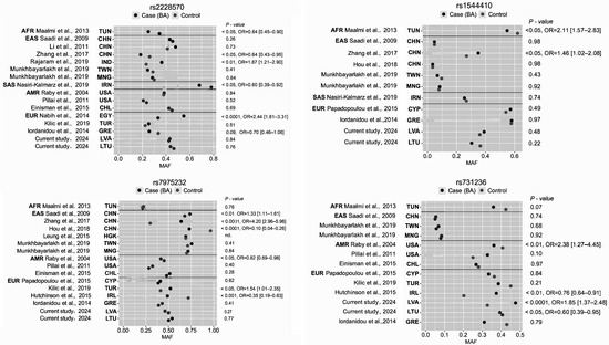 Chicago/Turabian StyleParamonova, Natalia, Ilva Trapina, Brigita Gradauskiene (Sitkauskiene), Samanta Plavina, Laura Tamasauskiene, Daina Bastyte, Ingrida Rumba-Rozenfelde, Sandra Tapina, Ieva Stakaitiene, Rasa Ugenskiene, and et al. 2024. "Genetic Diversity in Bronchial Asthma Susceptibility: Exploring the Role of Vitamin D Receptor Gene Polymorphisms in Varied Geographic Contexts" International Journal of Molecular Sciences 25, no. 3: 1943. https://doi.org/10.3390/ijms25031943