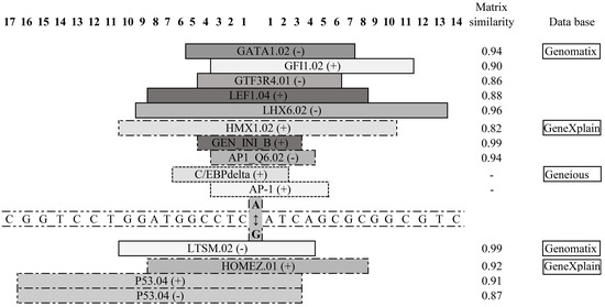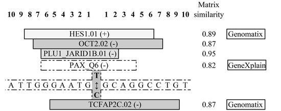 - Cartharius, K.; Frech, K.; Grote, K.; Klocke, B.; Haltmeier, M.; Klingenhoff, A.; Frisch, M.; Bayerlein, M.; Werner, T. Matinspector and beyond: Promoter analysis based on transcription factor binding sites. Bioinformatics 2005, 21, 2933–2942. [Google Scholar] [CrossRef]