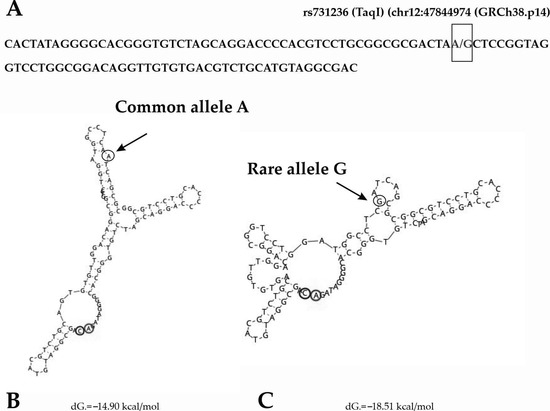 2.5. Eventual Functional Significance of the SNPs’ Allelic Variants