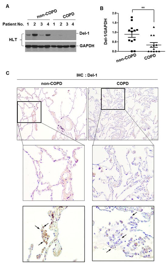 Kwak N, Lee K-H, Woo J, Kim J, Park J, Lee C-H, Yoo C-G. Del-1 Plays a Protective Role against COPD Development by Inhibiting Inflammation and Apoptosis. International Journal of Molecular Sciences. 2024; 25(4):1955. https://doi.org/10.3390/ijms25041955