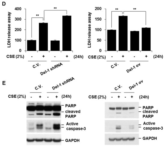 2.3. Del-1 Suppressed CSE-Induced IL-8 Production and Apoptosis in Lung Epithelial Cells