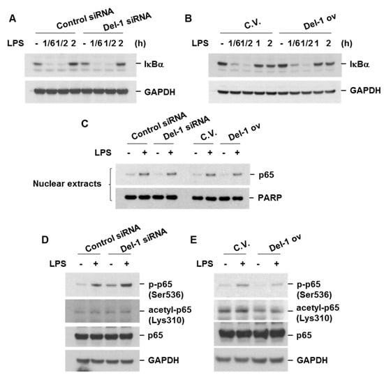 - Lee, S.H.; Kim, D.Y.; Kang, Y.Y.; Kim, H.; Jang, J.; Lee, M.N.; Oh, G.T.; Kang, S.W.; Choi, E.Y. Developmental endothelial locus-1 inhibits MIF production through suppression of NF-κB in macrophages. Int. J. Mol. Med. 2014, 33, 919–924. [Google Scholar] [CrossRef][Green Version]