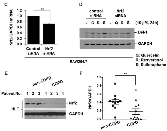 2.2. The Expression Level of Del-1 in Lungs of CSE-Instilled Mice and Its Impact on Oxidative Stress