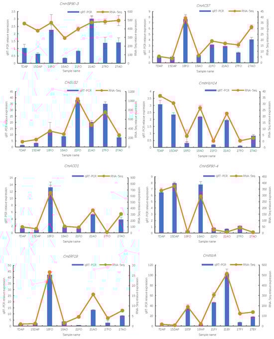 We selected eight DEGs associated with ovule development to validate the RNA-Seq results, with the
