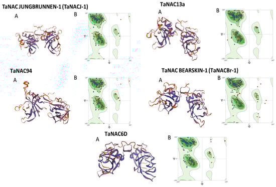 2.5. NAC Domain Identification, Prediction of Protein Structure, and Various Attributes of Selected TaNACs