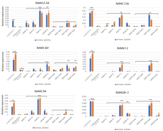 3.3. Selected TaNACs Are Preferentially Expressed in the Roots