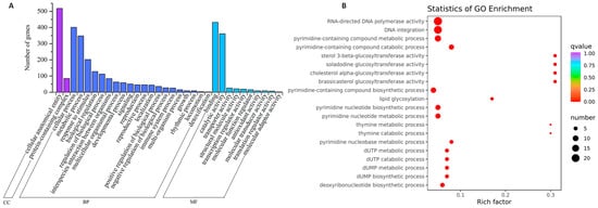 2.4. GO (Gene Ontology) Annotation and Enrichment Analysis of the Shared DEGs in Four Genotypes