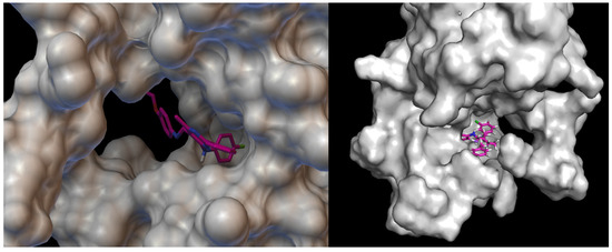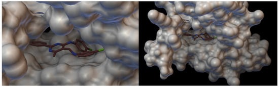Visualisation of Schiff base III with VEGFR2 [43]. On the left hand side: close-up of arrangement in the VEGFR2 pocket.