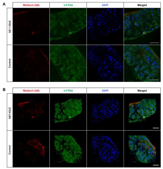 - Thal, D.R.; Walter, J.; Saido, T.C.; Fändrich, M. Neuropathology and Biochemistry of Aβ and Its Aggregates in Alzheimer’s Disease. Acta Neuropathol. 2015, 129, 167–182. [Google Scholar] [CrossRef] [PubMed]