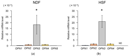 - Kusumoto, J.; Takeo, M.; Hashikawa, K.; Komori, T.; Tsuji, T.; Terashi, H.; Sakakibara, S. OPN4 belongs to the photosensitive system of the human skin. Genes Cells 2020, 25, 215–225. [Google Scholar] [CrossRef]
