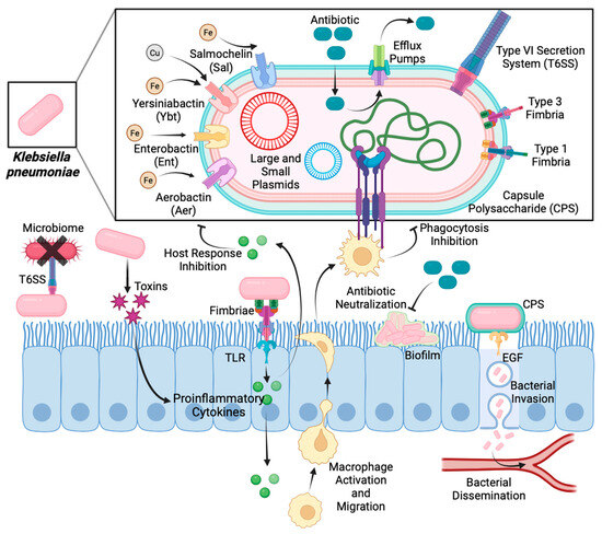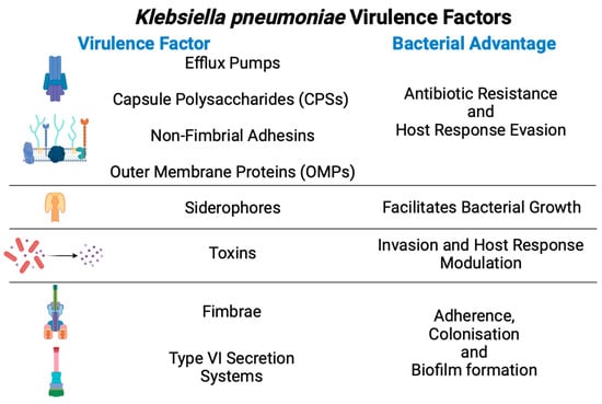 Kpn has acquired many virulence factors to promote colonisation, evasion of host immune responses, and bacterial competition (Figure 2).