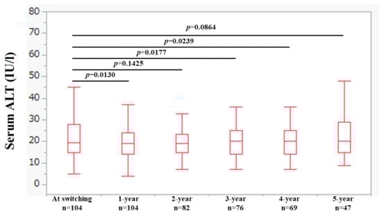 APA StyleNishikawa, T., Matsui, M., Onishi, S., Ushiro, K., Asai, A., Kim, S.-K., & Nishikawa, H. (2024). Long-Term Outcomes after Switching to Tenofovir Alafenamide in Patients with Chronic Hepatitis B. International Journal of Molecular Sciences, 25(4), 2245. https://doi.org/10.3390/ijms25042245