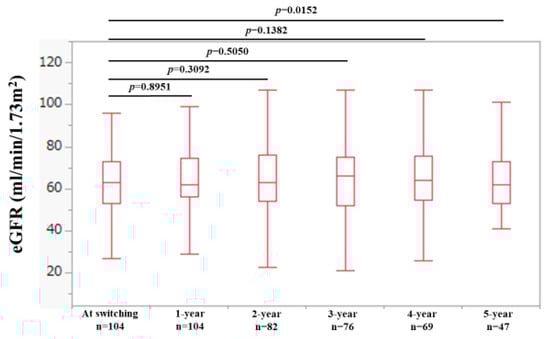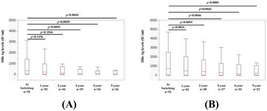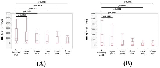 Nishikawa, T.; Matsui, M.; Onishi, S.; Ushiro, K.; Asai, A.; Kim, S.-K.; Nishikawa, H. Long-Term Outcomes after Switching to Tenofovir Alafenamide in Patients with Chronic Hepatitis B. Int. J. Mol. Sci. 2024, 25, 2245. https://doi.org/10.3390/ijms25042245