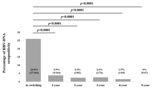 2.5. Changes in the Percentage of Detectable HBV-DNA over Time