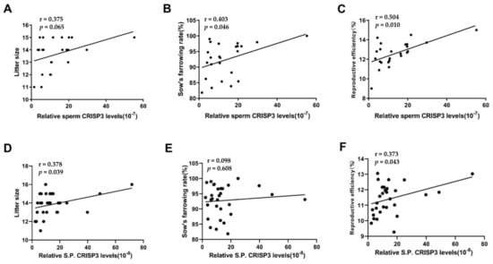 2.1. Correlation between Sperm CRISP3 Protein Levels and Reproductive Parameters in Boars