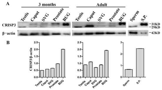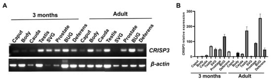 - Jalkanen, J.; Huhtaniemi, I.; Poutanen, M. Mouse cysteine-rich secretory protein 4 (CRISP4): A member of the Crisp family exclusively expressed in the epididymis in an androgen-dependent manner. Biol. Reprod. 2005, 72, 1268–1274. [Google Scholar] [CrossRef] [PubMed]