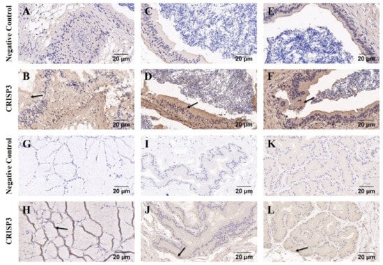 2.3. Expression and Localization of CRISP3 in Porcine Reproductive Organs and Semen