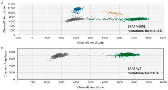 - Hélias-Rodzewicz, Z.; Funck-Brentano, E.; Baudoux, L.; Jung, C.K.; Zimmermann, U.; Marin, C.; Clerici, T.; Le Gall, C.; Peschaud, F.; Taly, V.; et al. Variations of BRAF mutant allele percentage in melanomas. BMC Cancer 2015, 15, 497–507. [Google Scholar] [CrossRef] [PubMed]