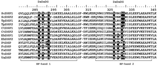 - Rigden, D.J.; Galperin, M.Y. The DxDxDG Motif for Calcium Binding: Multiple Structural Contexts and Implications for Evolution. J. Mol. Biol. 2004, 343, 971–984. [Google Scholar] [CrossRef]