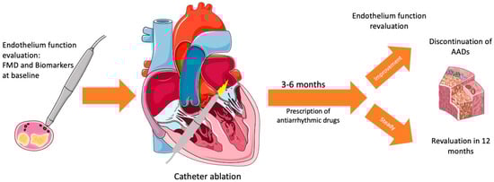 - Patients undergoing catheter ablation should undergo a preoperative evaluation of endothelial function, as well as follow-up assessments for a period after the procedure. The evaluation of endothelial function, both pre- and postoperative, should encompass a dual approach involving biomarkers and practical methods like FMD and RH-PAT for a thorough assessment. However, it is imperative to note that further studies are required to precisely determine the most effective methods and the optimal time periods for their application.