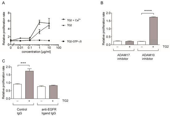 2.2. TG2 Promotes Keratinocyte Proliferation through ADAM17 Dependent EGFR-Ligand Shedding