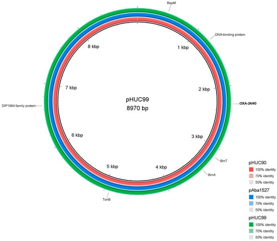 - Bertini, A.; Poirel, L.; Mugnier, P.D.; Villa, L.; Nordmann, P.; Carattoli, A. Characterization and PCR-based replicon typing of resistance plasmids in Acinetobacter baumannii. Antimicrob. Agents Chemother. 2010, 54, 4168–4177. [Google Scholar] [CrossRef] [PubMed]