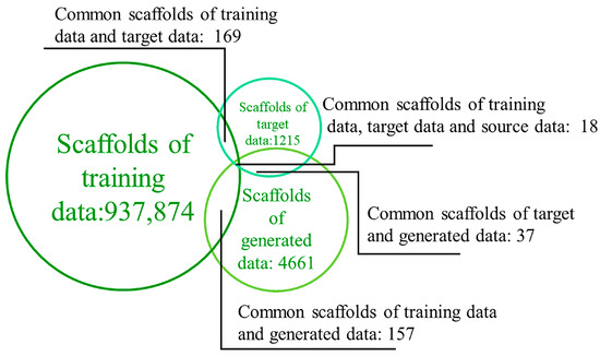 Numbers of scaffolds in the training, target, and generated data, and numbers of overlapping scaffolds.